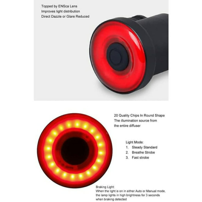 Lampu ini diletakkan pada bagian belekang untuk memberi rambu-rambu pada kendaraan lain untuk berhati-hati akan keberadaan Anda yang sedang bersepeda. Berguna saat Anda bersepeda pada keadaan berembun atau malam hari dimana jarak pandang sangat terbatas. Lampu sepeda ini dapat menyala lebih terang saat Anda melakukan pengereman.