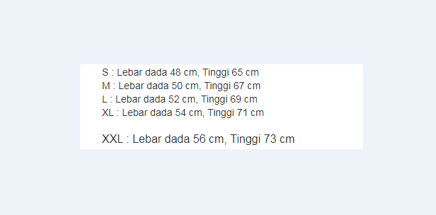 Size S, M, L, XL, XXL